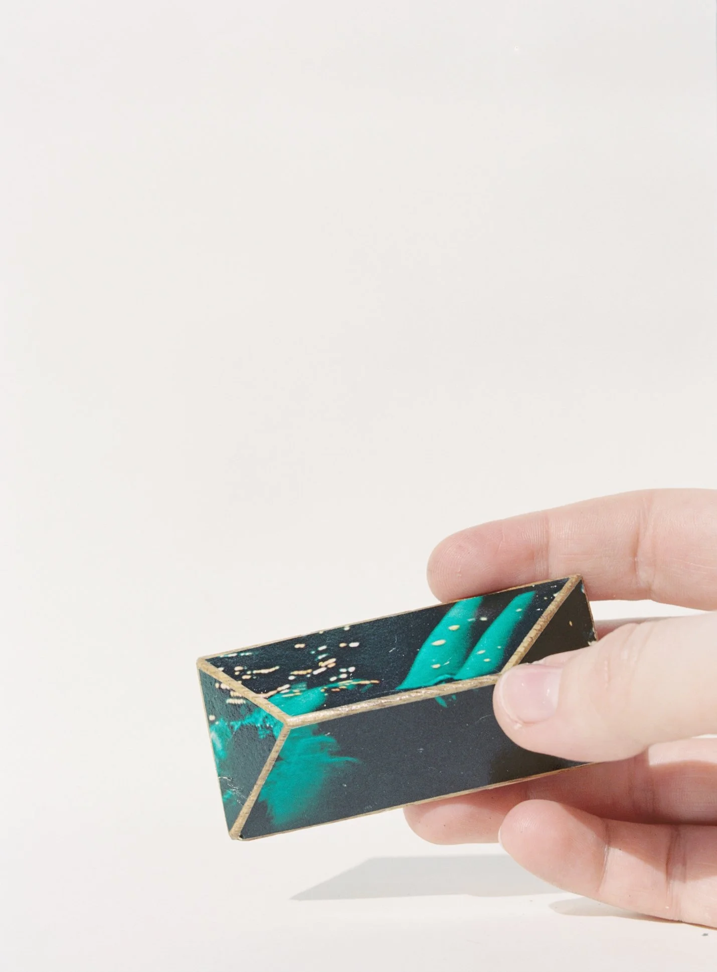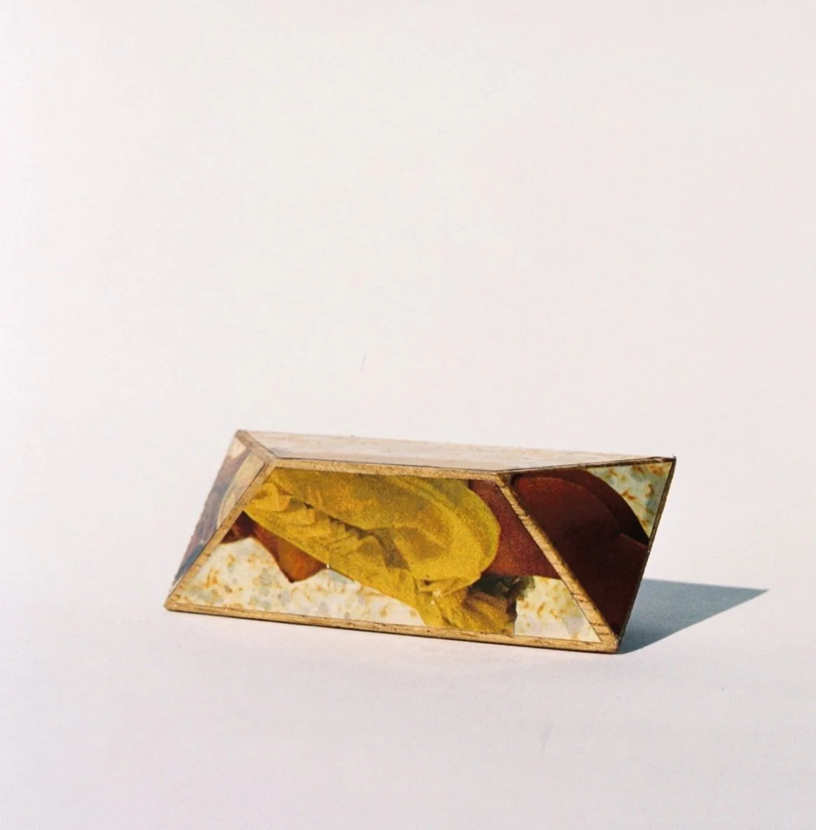 multi-sided figure no.4 repurposed playboy on teak wood blocks (3 x 2 x 2 1/2 in)