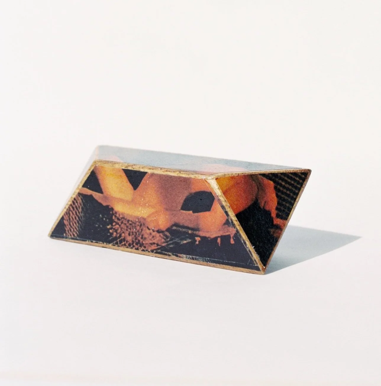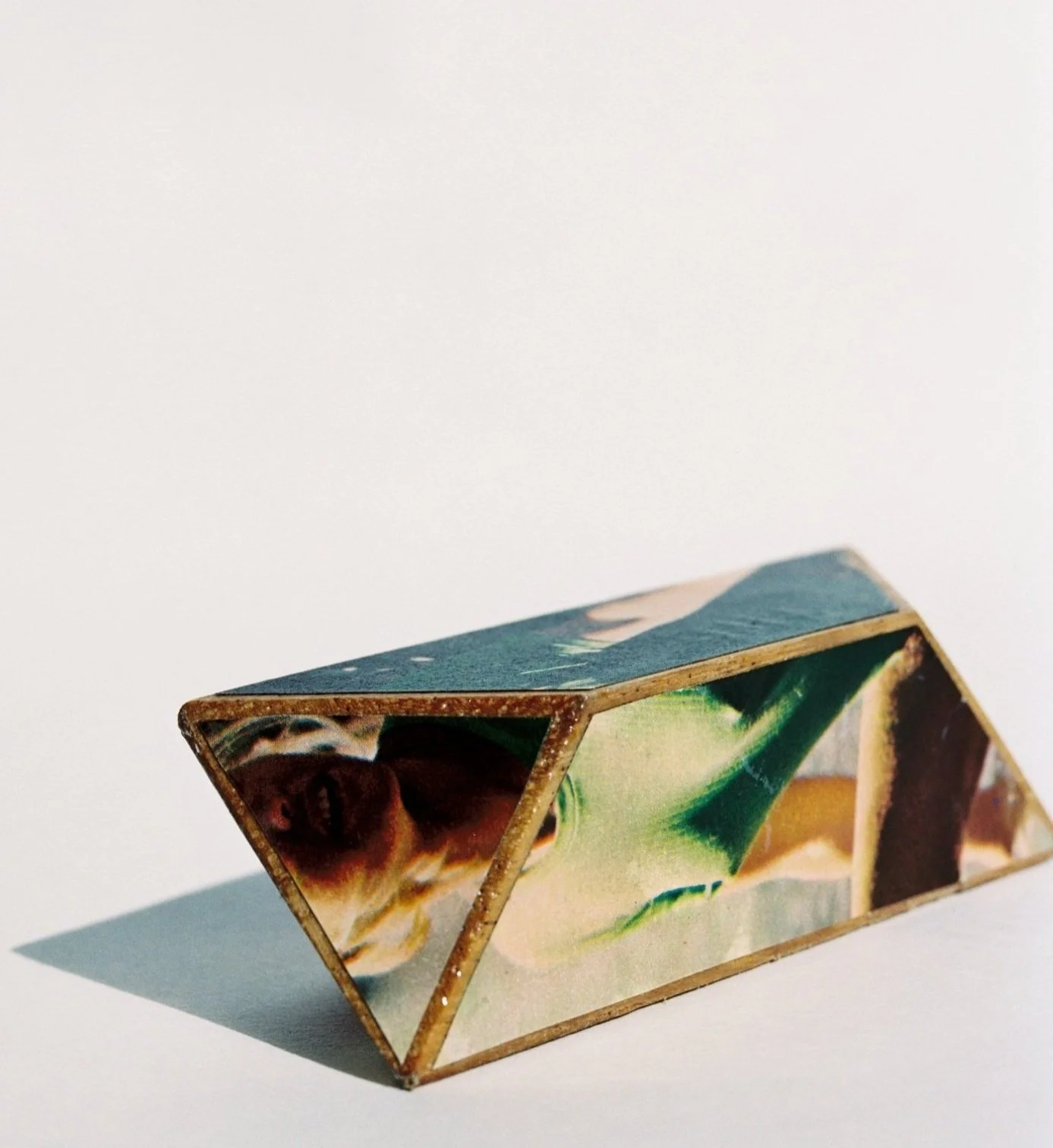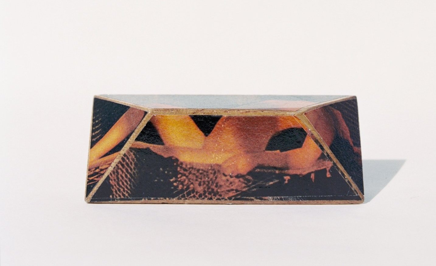 multi-sided figure no. 3 repurposed playboy on teak wood blocks (3 x 2 x 2 1/2 in)