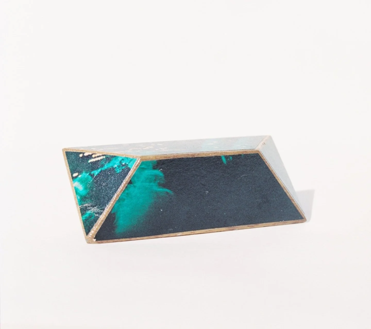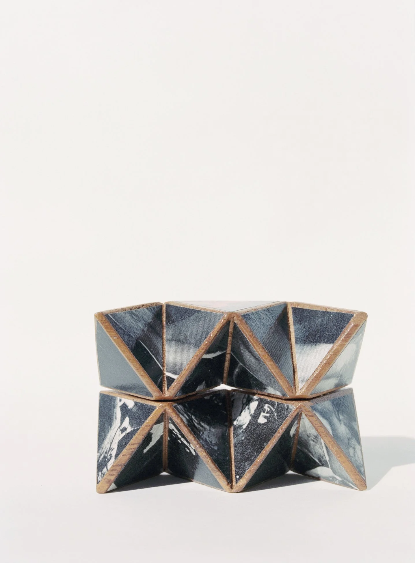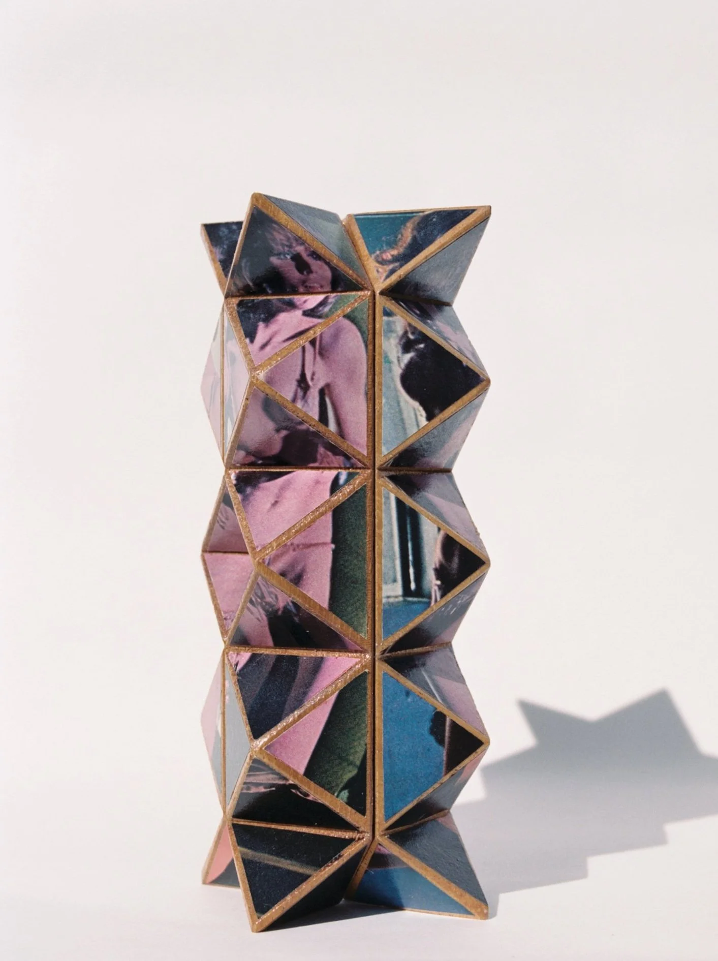 multi-sided figure no. 3 repurposed playboy on teak wood blocks (3 x 2 x 2 1/2 in)